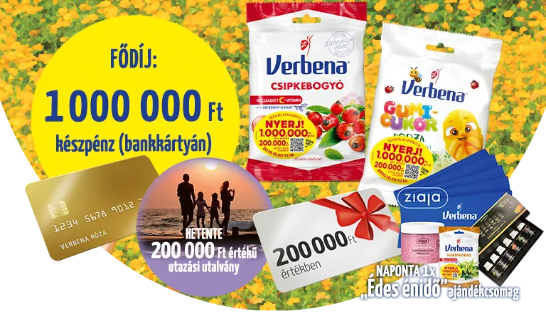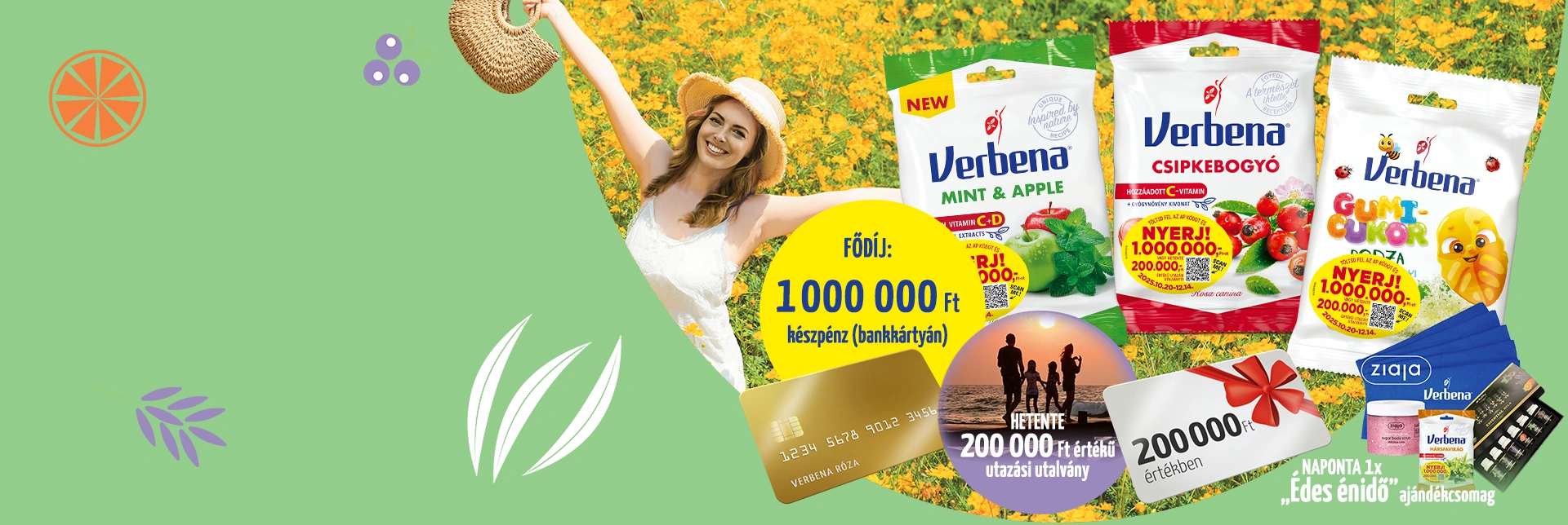 A promócióban minden Verbena termék részt vesz (promóciós matricával ellátott és matrica nélküli termék)
